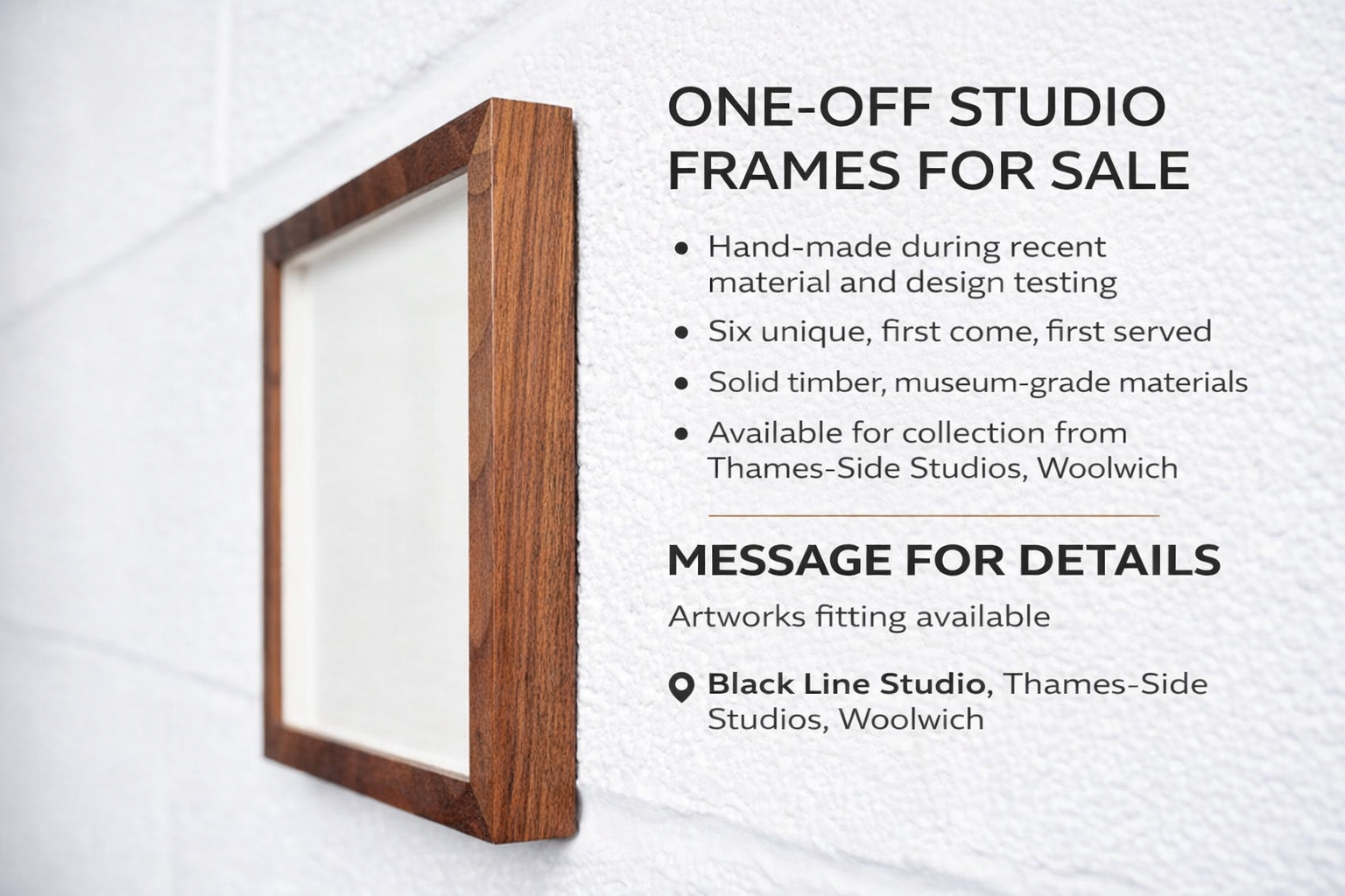I build custom frames for artists, photographers and collectors using museum-grade materials and traditional craft methods. Each frame is made individually, with attention to structure, proportion and surface finish.
